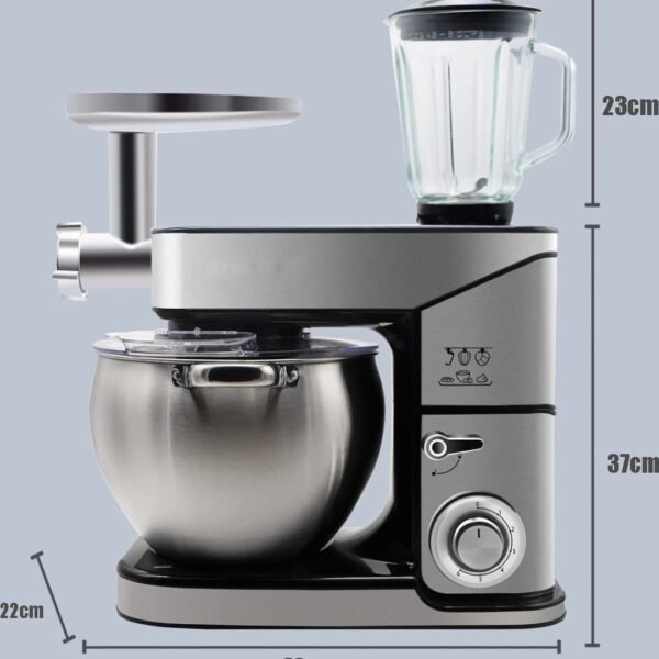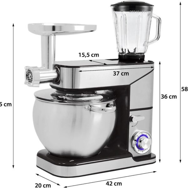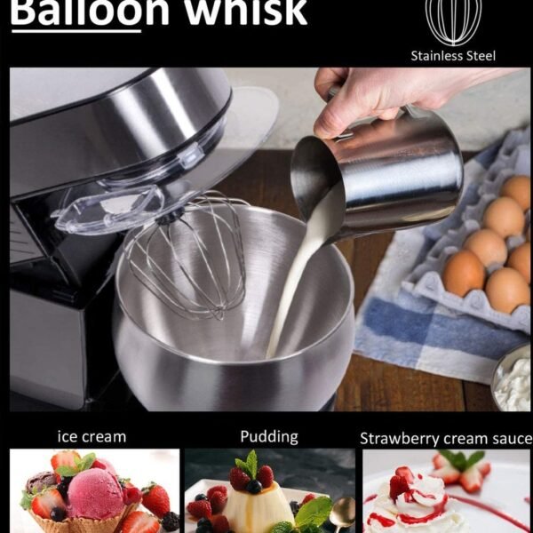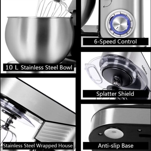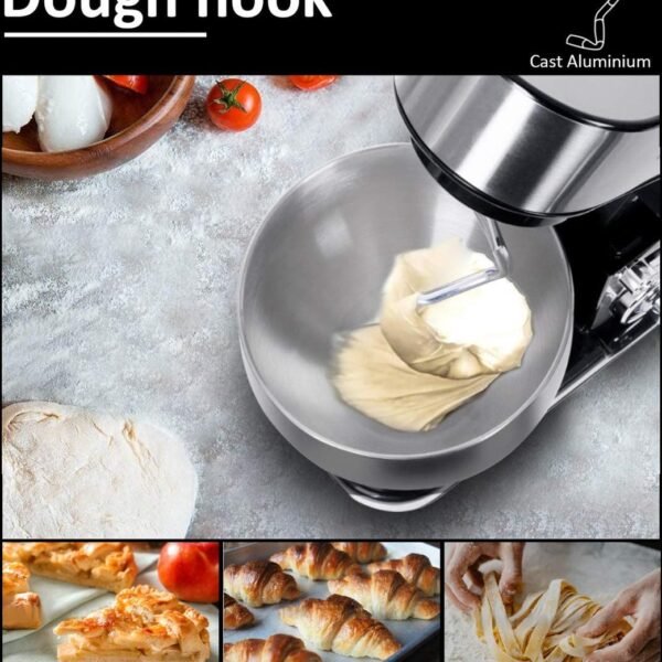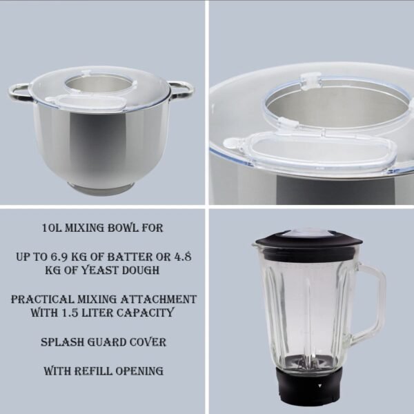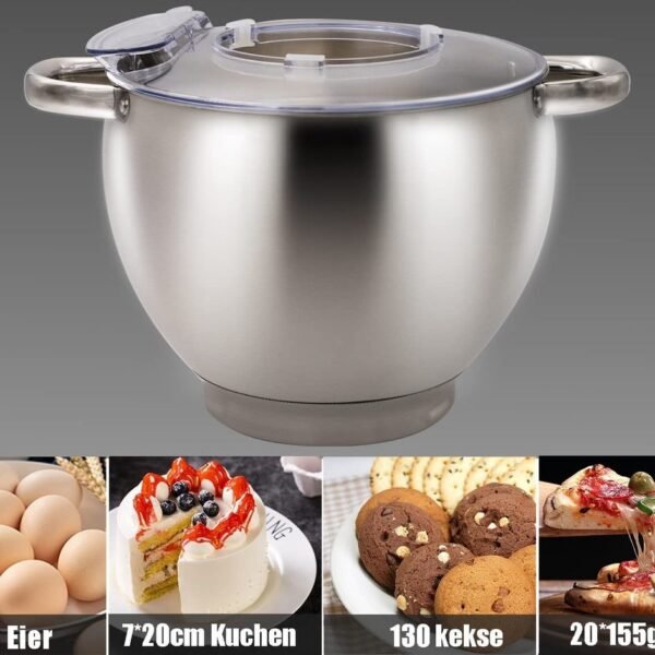 The super large bowl in your kitchen, meets all your needs. Made of stainless steel so you can easily make dough in larger quantities without wasting time. The mixing action rotates the beaters around the included 10 Liter stainless steel bowl for even and completely hands-free mixing.