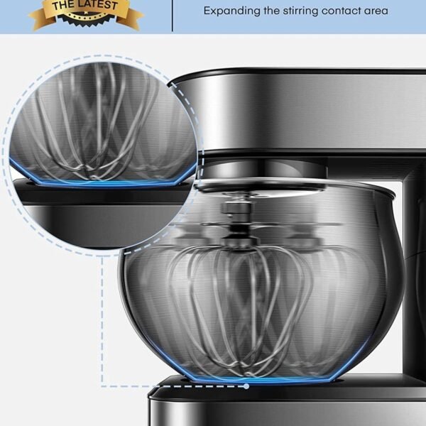 The tilt head design helps the stand mixer to lift its head smoothly, while effectively preventing you from being injured by accidental touching. The tilt lock of the mixer can lock the head when it is lifted to ensure that it does not fall heavily, the inner spring allows the head to go down slowly and no need to apply force to lift it. It also provides access to installing or removing the bowl and accessories.